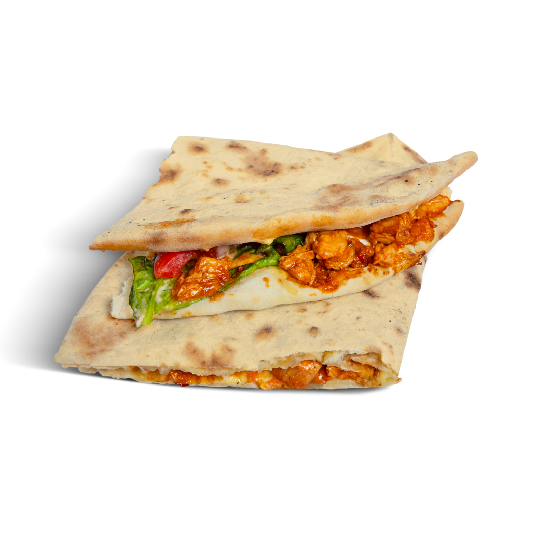 Bukë pice, sos domatesh, kaçkavall, BBQ pulë